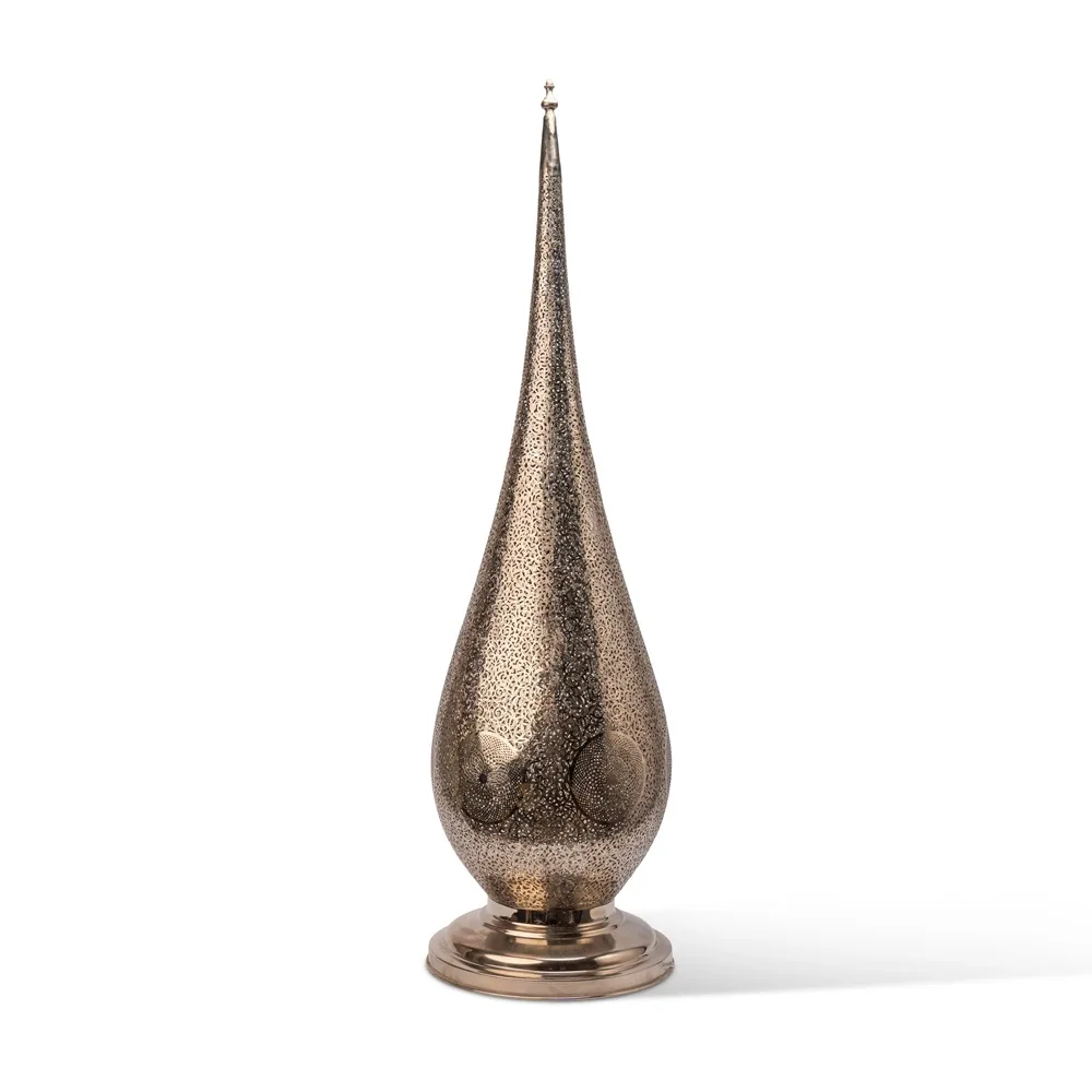 Moroccan Table Lamp in Silvered Brass – Handcrafted Pierced Metal Design