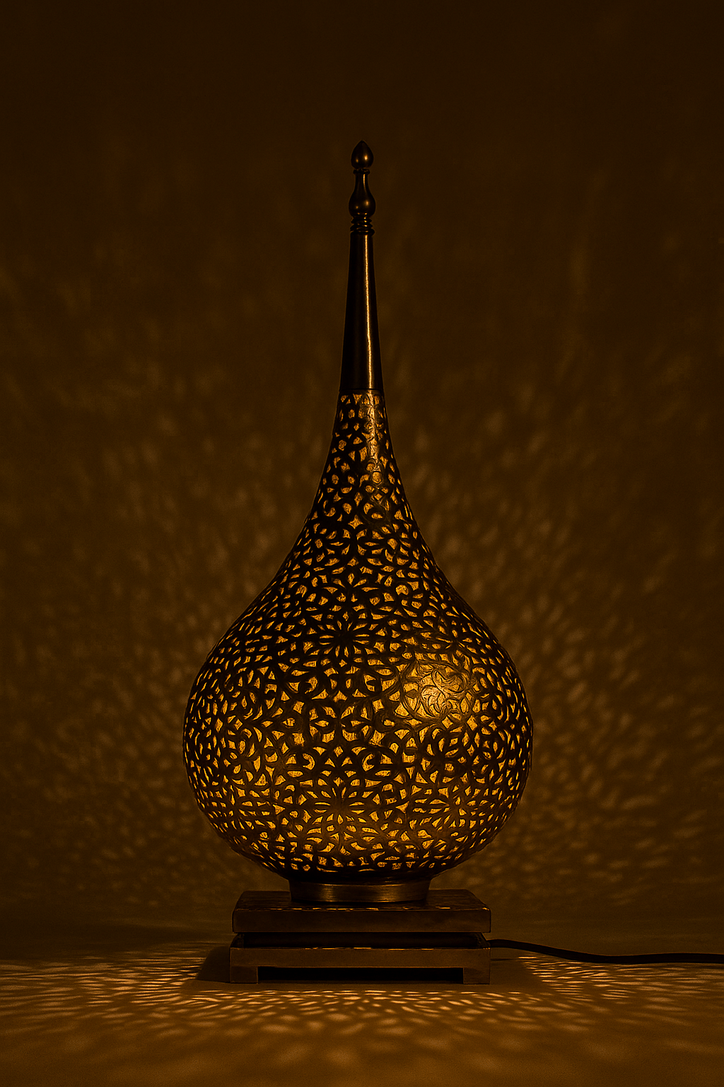 Illuminate your space with elegance and heritage using this handcrafted antique brass floor lamp, inspired by traditional Moroccan design. Featuring a graceful teardrop shape, this lamp is made from solid brass and carefully hand-pierced with intricate floral and arabesque patterns. The warm golden patina brings a rich, vintage charm to any interior – from eclectic bohemian lounges to sophisticated living rooms.
