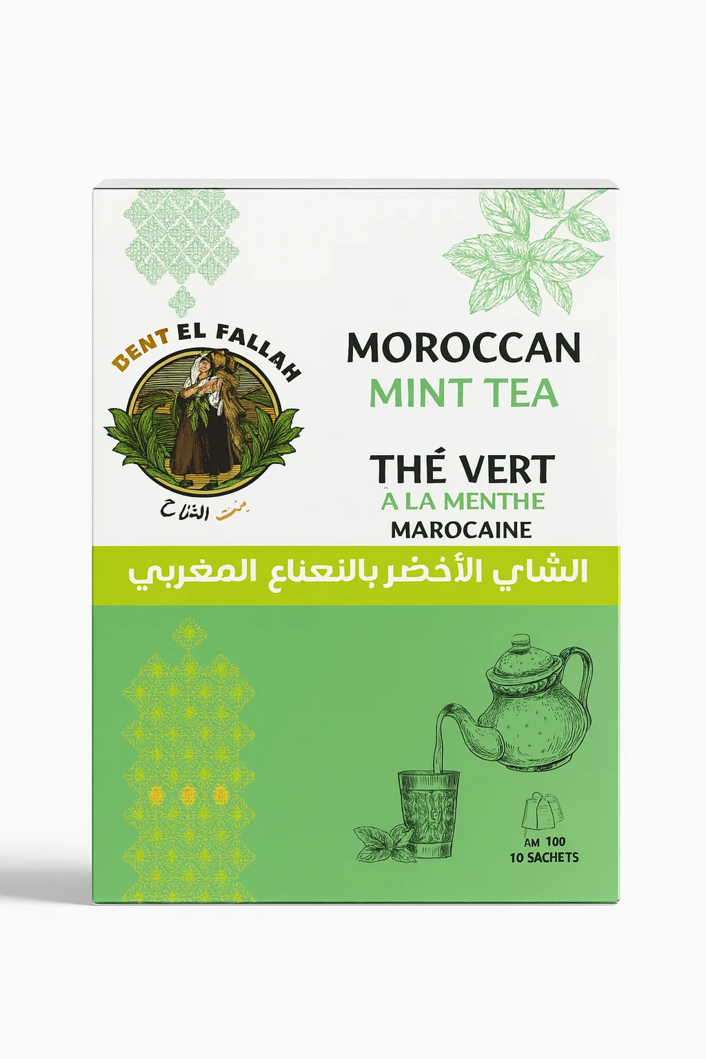 Experience the rich heritage of Morocco with Bent El Fallah Moroccan Mint Tea — a perfect blend of fine green tea and refreshing natural mint. Each box contains 110 individually packed sachets, delivering the authentic taste of Moroccan hospitality in every cup.