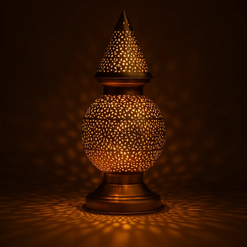 Gold Moroccan Cone Top Table Lamp – Hand-Pierced Brass Lighting