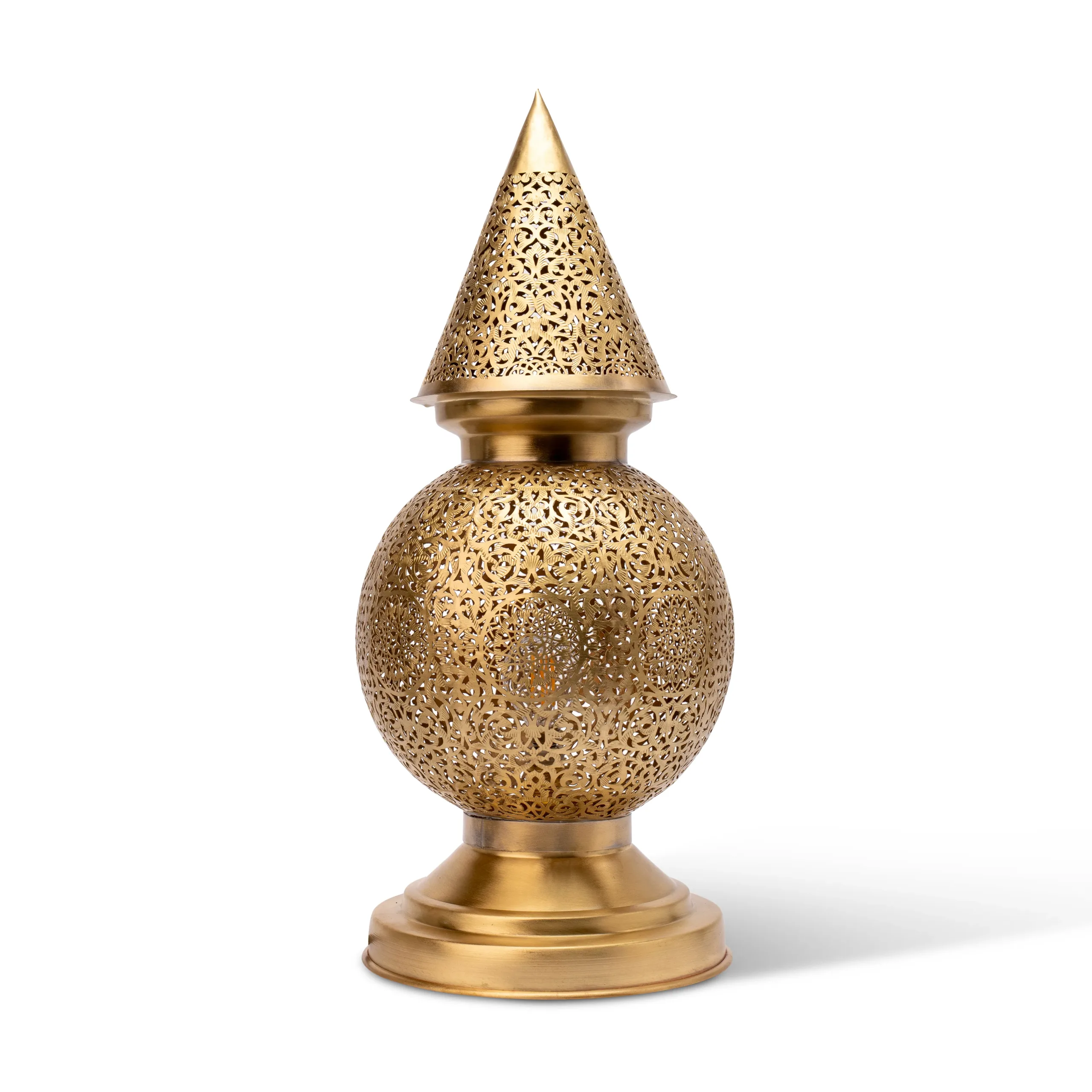 Gold Moroccan Cone Top Table Lamp – Hand-Pierced Brass LightingGold Moroccan Cone Top Table Lamp – Hand-Pierced Brass Lighting