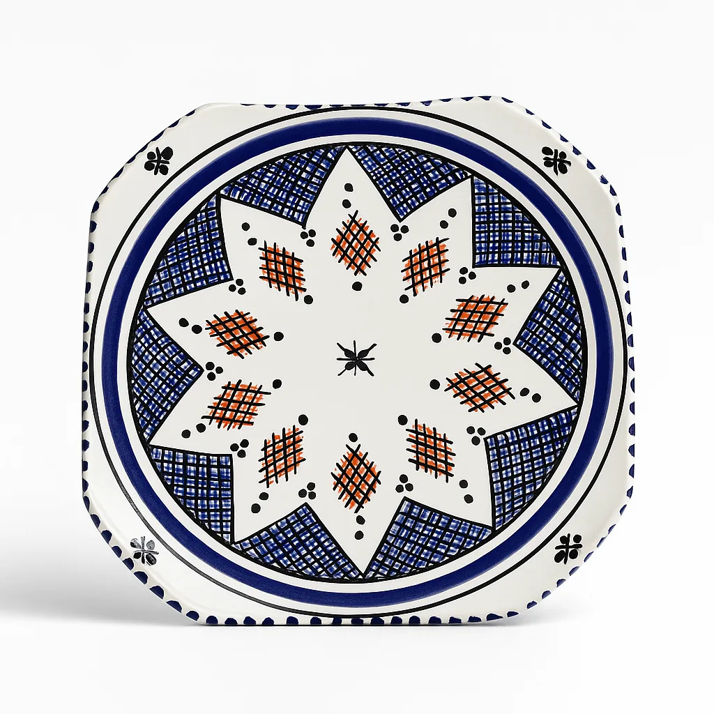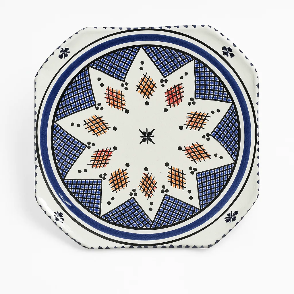 Hand Painted Moroccan Plate – Blue & Red Geometric Star DesignHand Painted Moroccan Plate – Blue & Red Geometric Star Design