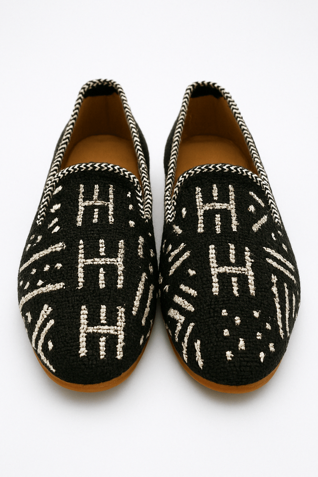 Step into effortless elegance with our handmade ladies mule slippers, crafted in Morocco by skilled artisans. These black and white slippers feature bold traditional Moroccan patterns woven with natural wool and finished with a soft leather insole.