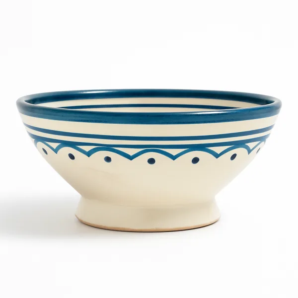 Handmade Moroccan Ceramic Bowl from Safi with Blue Hand-Painted PatternsHandmade Moroccan Ceramic Bowl from Safi with Blue Hand-Painted Patterns