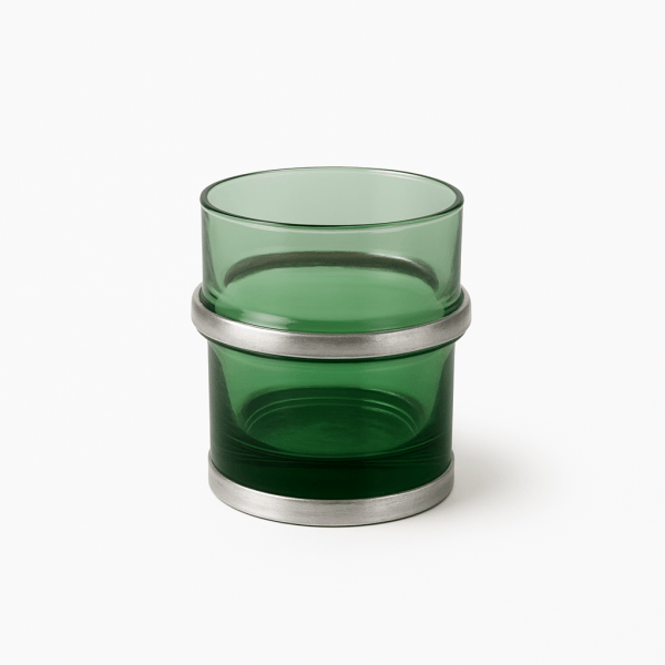 Moroccan Beldi Glass – Emerald Green with Brushed Silver Bands