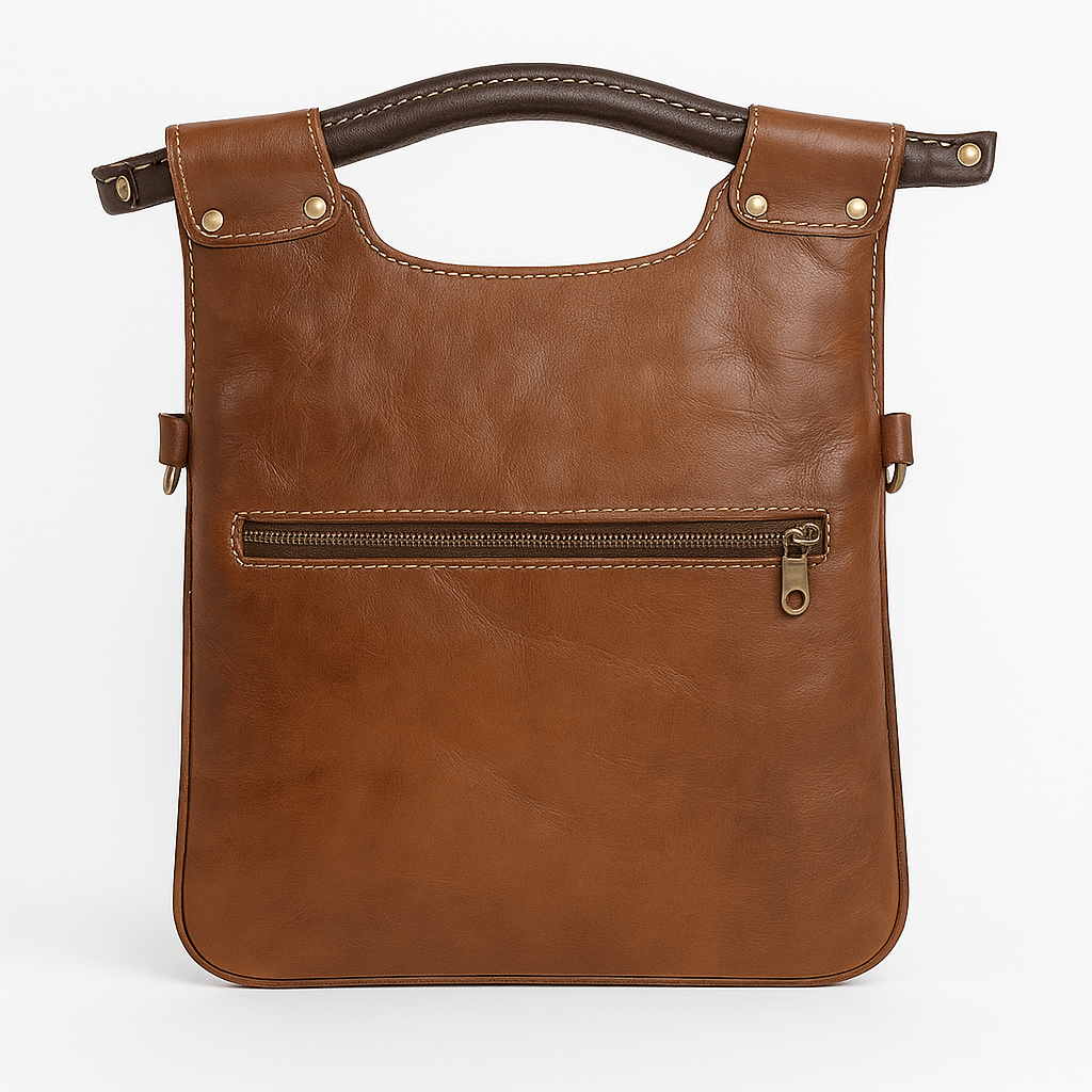 A refined blend of tradition and modern functionality, this small leather crossbody bag features a structured silhouette with a smooth tan finish. Designed with a top handle and zipped pocket for quick access, it’s the perfect grab-and-go companion for everyday errands, city walks, or light travels.