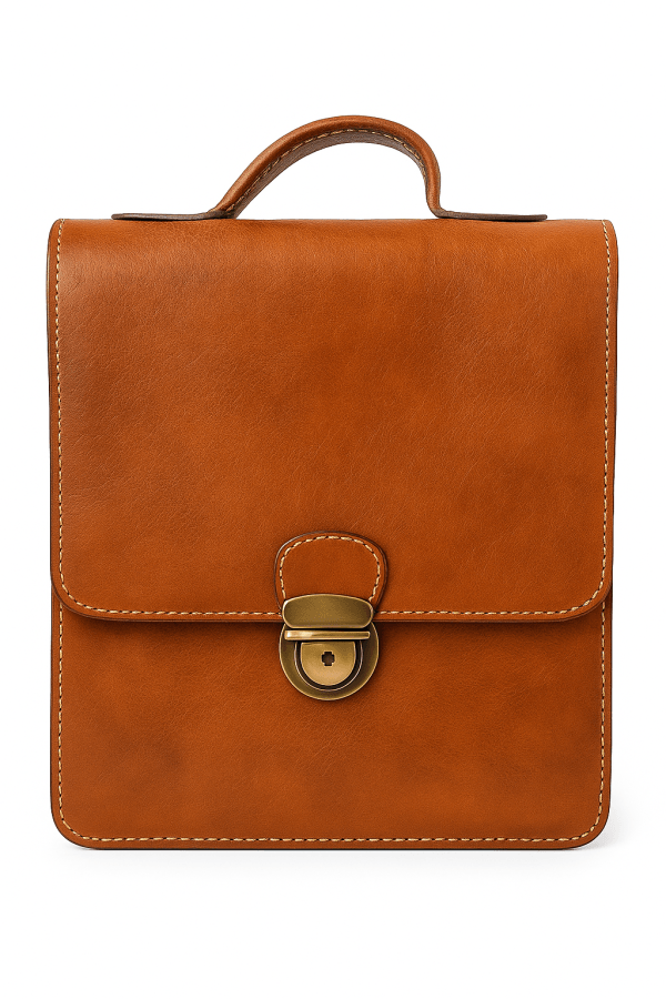 Handcrafted in Morocco using premium full-grain leather, this tan leather satchel bag blends classic design with everyday practicality. Its structured silhouette and traditional brass twist-lock closure give it a vintage charm, while the top handle makes it ideal for both work and day-to-day errands.