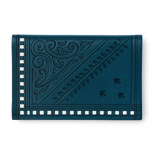 Teal Moroccan Leather Wallet – Handcrafted Bifold Wallet with Geometric Embossing