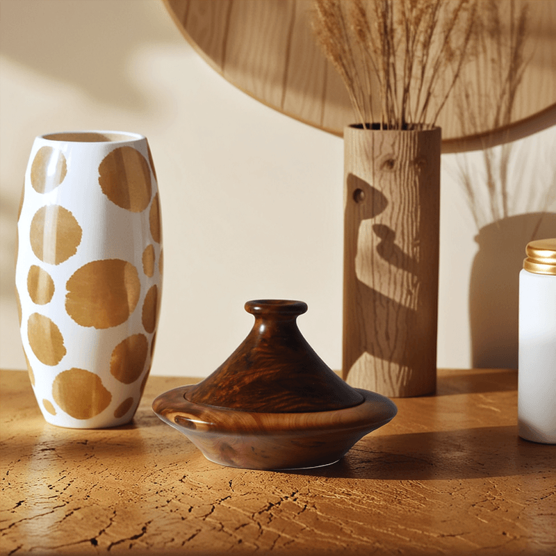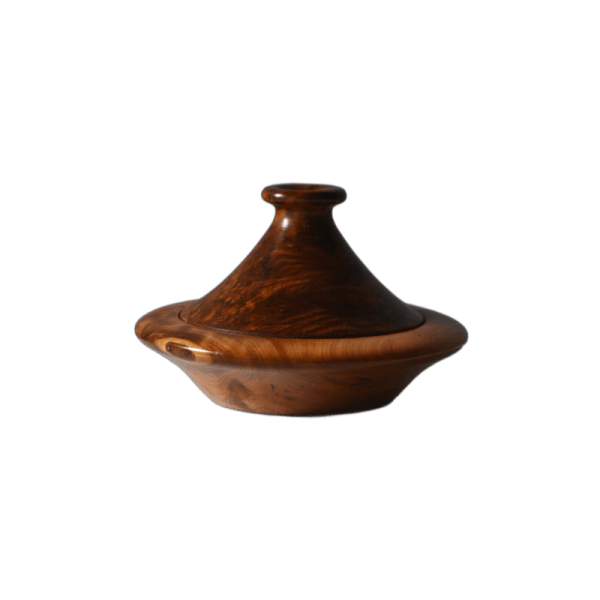 Crafted from aromatic Thuya Wood Moroccan Tajine, this unique tajine showcases the rich grain patterns and warm scent characteristic of Morocco’s indigenous conifers. Each piece is shaped and polished by hand, resulting in a smooth finish that feels luxurious. Though not intended for cooking, it serves beautifully as a spice or jewellery holder and makes a thoughtful gift. Its organic aesthetic bridges rustic and refined décor styles.